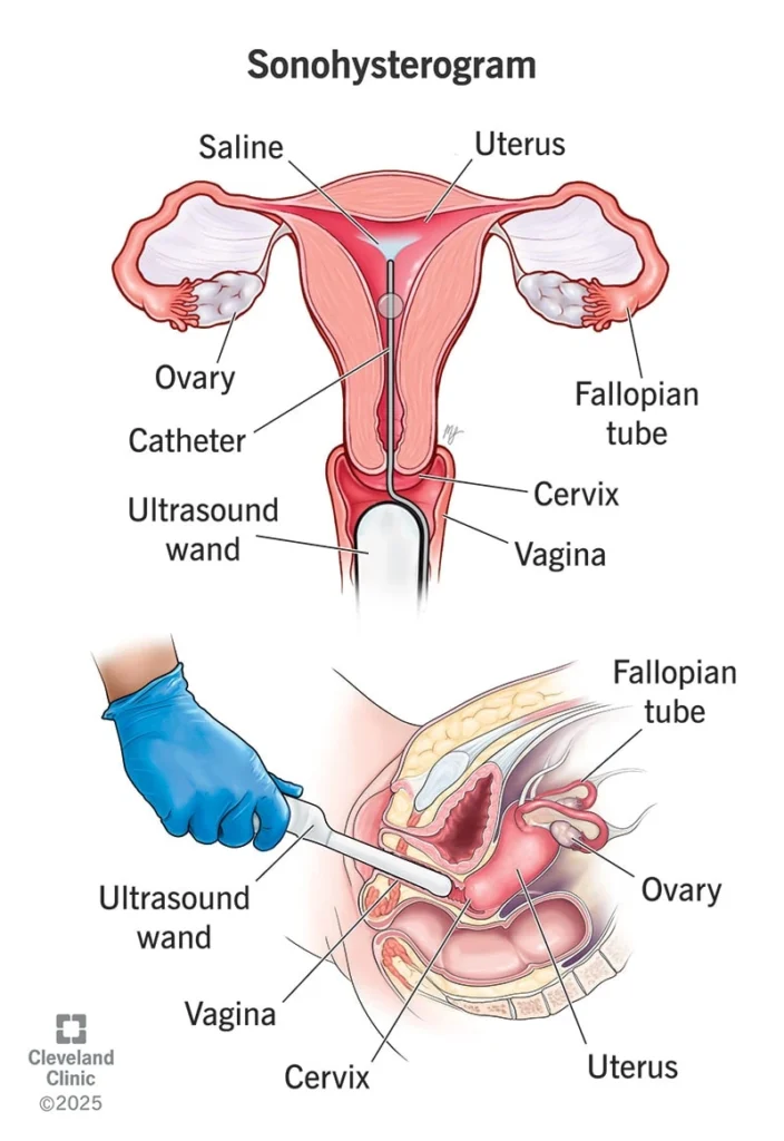 - Saline Infusion Sonography (SIS): A special procedure using saline to assess the uterine cavity for polyps or scars.